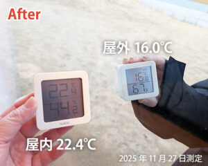 しかし、性能向上リノベーション後は、室外温度が16.0℃でも室内は22.4℃を保ち、快適な室温をしっかりキープできるようになりました。