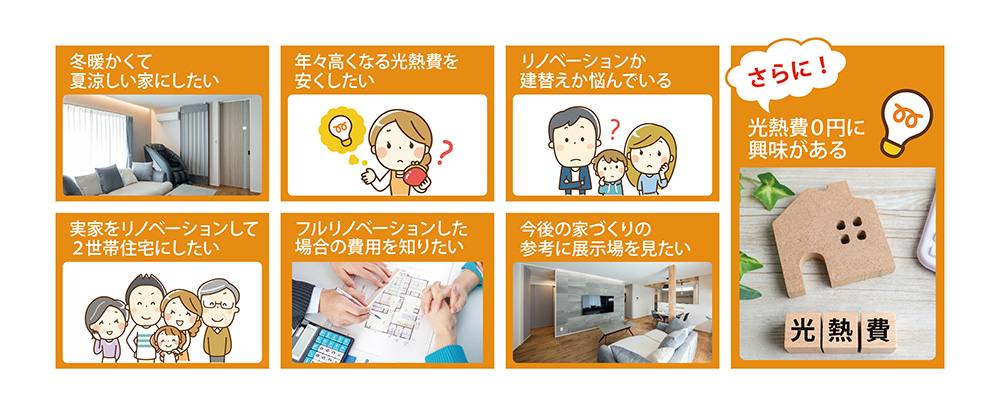 「光熱費0円の住まいに興味がある」など、さまざまなお悩みやご希望がある方へ。