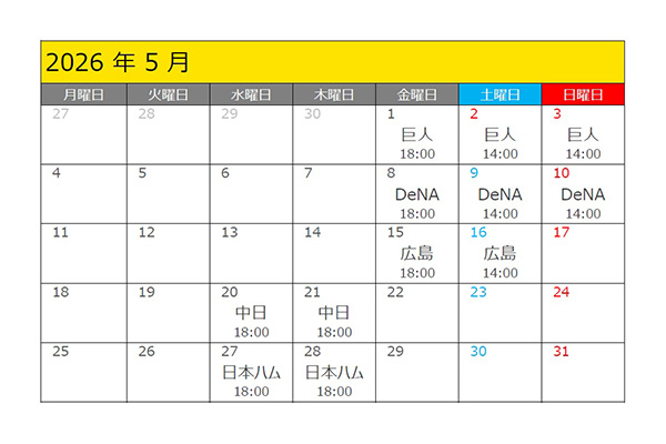 ※天候その他の事情により、試合中止または試合日等が変更になった場合には恐れ入りますがチケットのご返却をお願いします。中止になった試合が振替えになった場合は再度抽選となりますので予めご了承ください。